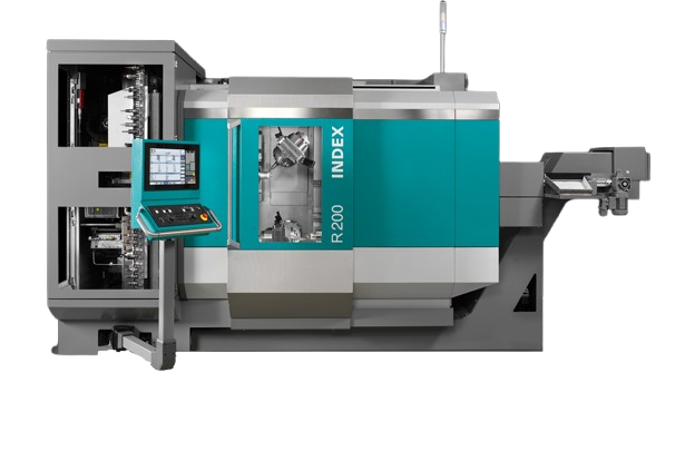 2 spindeliges 5-Achs Dreh- Fräszentrum mit Y;B Achse, HSK50 Satellittenfrässpindel 50-fach Werkzeugmagazin. 2x VDI40 Sternrevolver mit 12 Stationen. Für Stangenteile bis Ø 90mm, Einlegeteile im Futter bis Ø 250mm und Beschickungssystem WHU für automatisches beschicken bis ø 150 mm/20kg und für komplexe Dreh-Frästeile in kleinen bis mittleren Serien